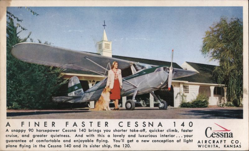 A snappy 90 horsepower Cessna 140 brings you shorter take-off, quicker climb, faster