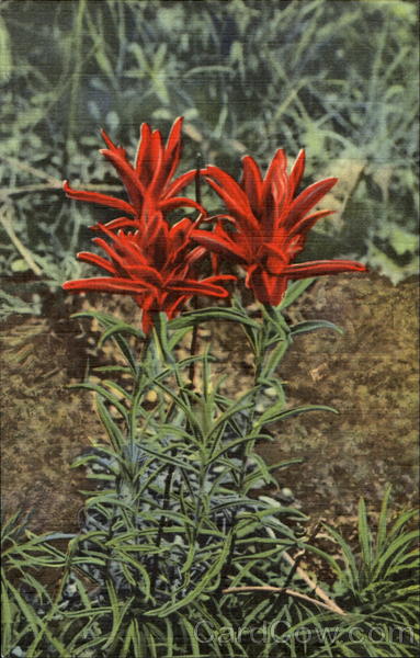 2008—INDIAN PAINTBRUSH (ALSO CALLED INDIAN PINK) COLORFUL FLOWER OF THE FOOTHILLS AND PRAIRIES State Flower of Wyoming 6B-H246 "c. T. ART-COLORTONE," SANBORN SOUVENIR CO., DENVER, COLO.