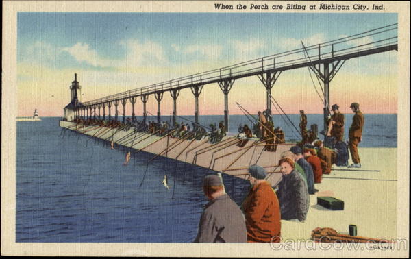 Front: When the Perch are Biting at Michigan City, Ind. 7A-H1369 Back: GEO. LEUSCH, MICHIGAN CITY, IND.