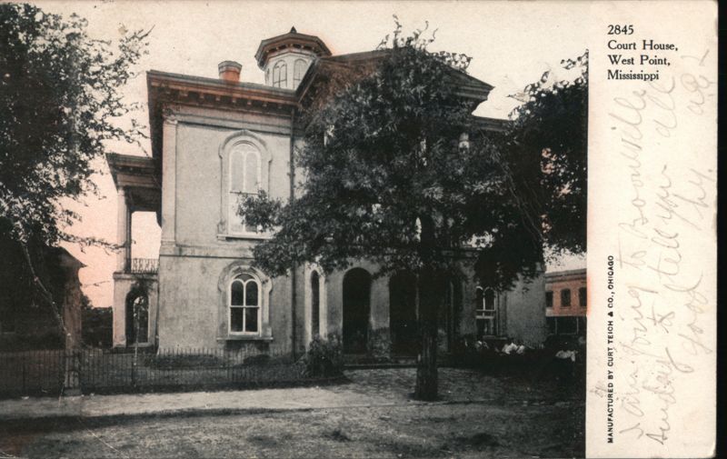 Two-story building with an octagonal cupola, arched windows, and a porch on the left side. Trees are in the foreground.