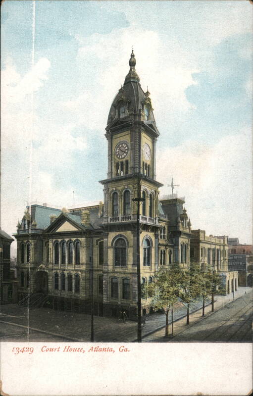 Exterior view of the Court House in Atlanta, Georgia, featuring a prominent clock tower.