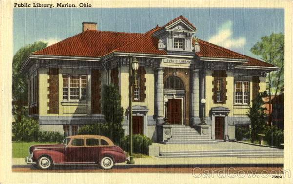 Front: Public Library, Marion. Ohio PVBLIC LIBRARY 73824 Back: "TICHNOR QUALITY VIEWS" REG. U. S. PAT. OFF. MADE ONLY BY TICHNOR BROS., INC., BOSTON, MASS. PUB. BY BUETTIN SALES CO.. MARION, OHIO.