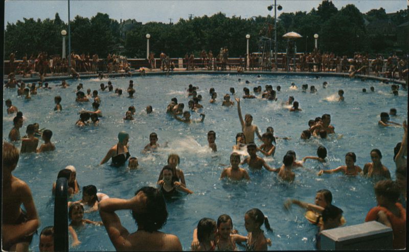 Published by Imperial Greeting Card Co., Inc., Pittsburgh, Pa. WEIRTON, W. VA. The Weirton Swimming Pool. A big favorite here with the youngsters. by COLOURPICTURE PUBLISHERS, INC., Boston 15, Mass., U.S.A. P21831 93 Color by Goll Studio HERE