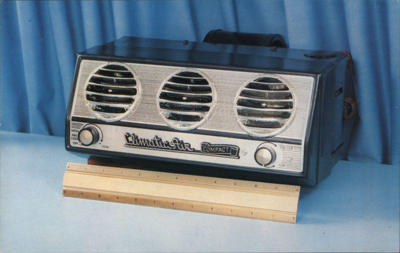 Front: HIGH PRE COO OFF LOW Climatta tie COMPACT COLDER OFF Back: CLIMATIC AIR "COMPACT" AUTO AIR CONDITIONER CALL YOUR DEALER - and, DRIVE COOL... MAN... COOL! William J. Davis, 2703 Howell St., Dallas, Texas C-20096 200 HERE
