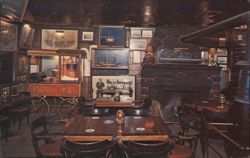 The historic Tap Room of the Griswold Inn at Essex, Connecticut. Probably the most handsome barroom in America, it was built in 1734 as an Essex school house.