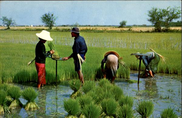 Cultivation of the Rice in Thailand Making the Tender Rice Plants into Sheaves for Replanting Post Card PHORN Distributed by PHORN THIP 9-9/1 Wat Suan Phlu, Bangkok Tel. 2343306 No. 1250