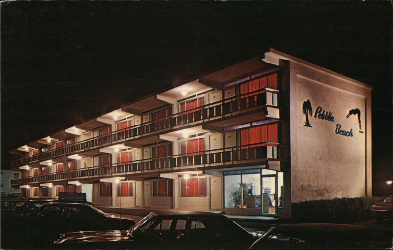 Motel rooms, efficiencies, cottages and apartments located directly on the ocean, Business Route U.S. 158, Mile Post 16. Amenities included air condition, T.V., large pool, kiddie pool and children's playground. Golf privileges at Duck Woods Golf Course. Owners — Mr. and Mrs. Roy S. Wicker. |