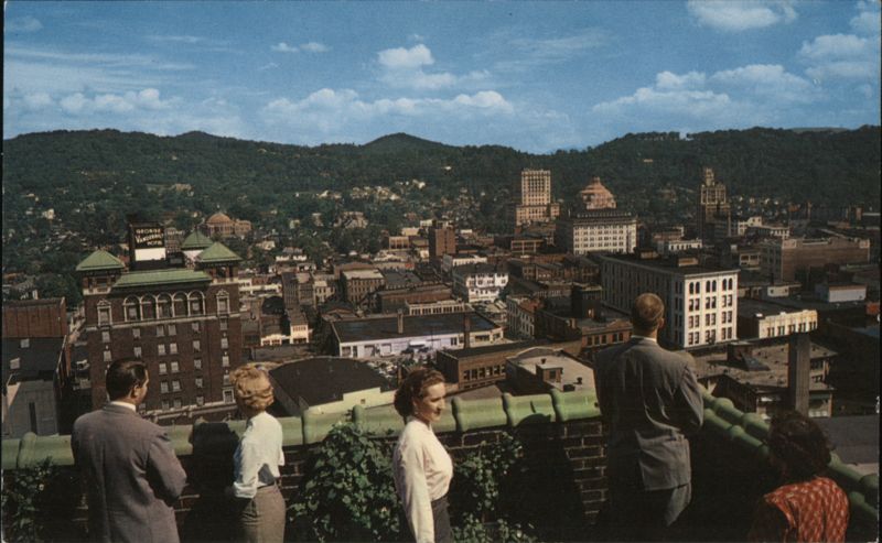 This view of the Asheville skyline is made from the roof of the Battery Park Hotel. It gives a broad panorama of Western North Carolina's largest city.