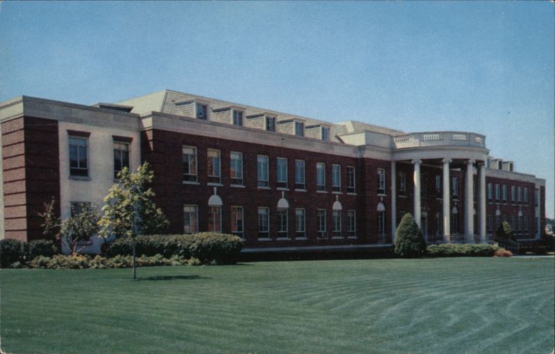 Exterior view of the Nebraska Children's Hospital, a multi-story brick building with a white-columned portico and a large lawn.