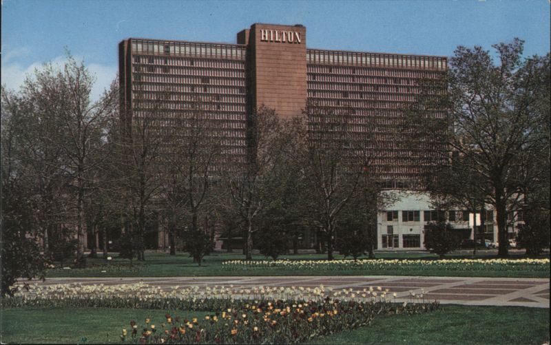 The ultra-modern Denver Hilton, offering the finest in guest and convention accommodations, as viewed from the Mile High City's beautiful Civic Center.