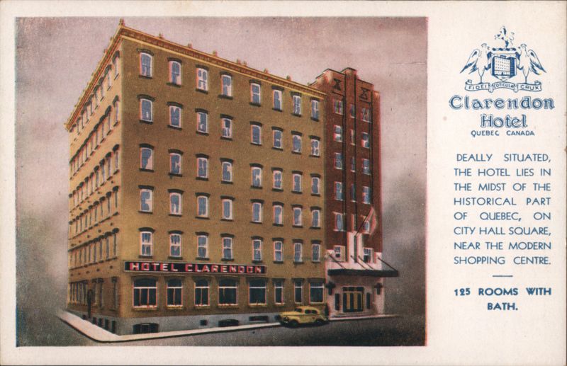 Ideally situated, the hotel lies in the midst of the historical part of Quebec, on City Hall Square, near the modern shopping centre. 125 rooms with bath.