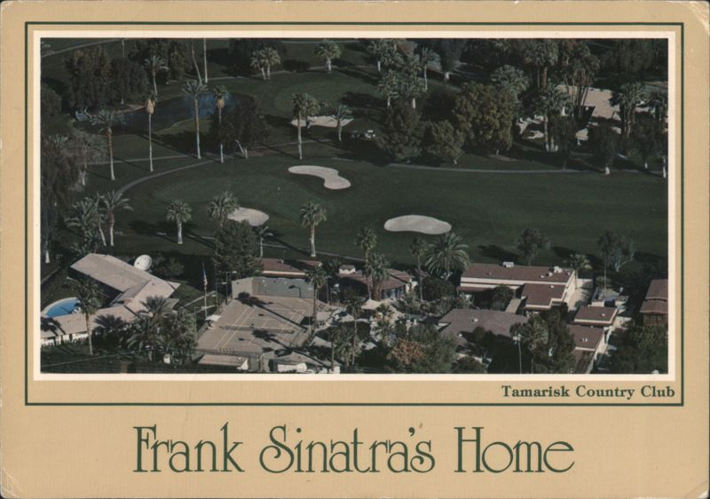 An aerial panorama of Frank Sinatra's estate, a few miles east of Palm Springs, facing the Tamarisk Country Club.