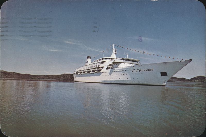 SUN PRINCESS: 17,000 tons, 700 passengers, all First Class, British Registered Luxury Cruise Ship. Princess Cruises itineraries included Mexico, Canada, and Alaska.