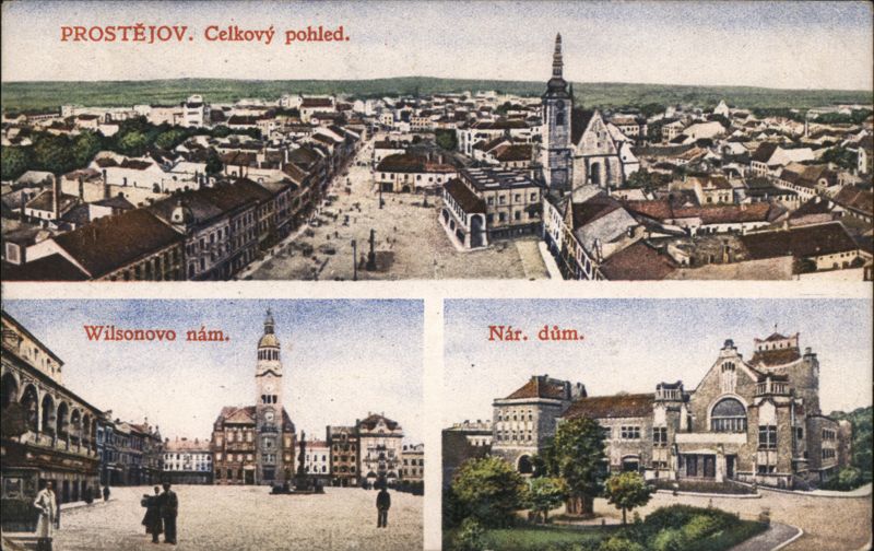 Prostějov: Celkový pohled, Wilsonovo nám., Nár. dům.