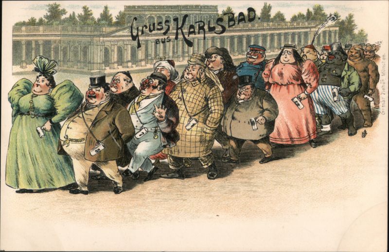 Gruss aus Karlsbad, Caricature of Spa Guests