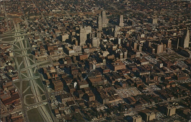 Aerial View of Kansas City Skyline with Sixth Street Expressway