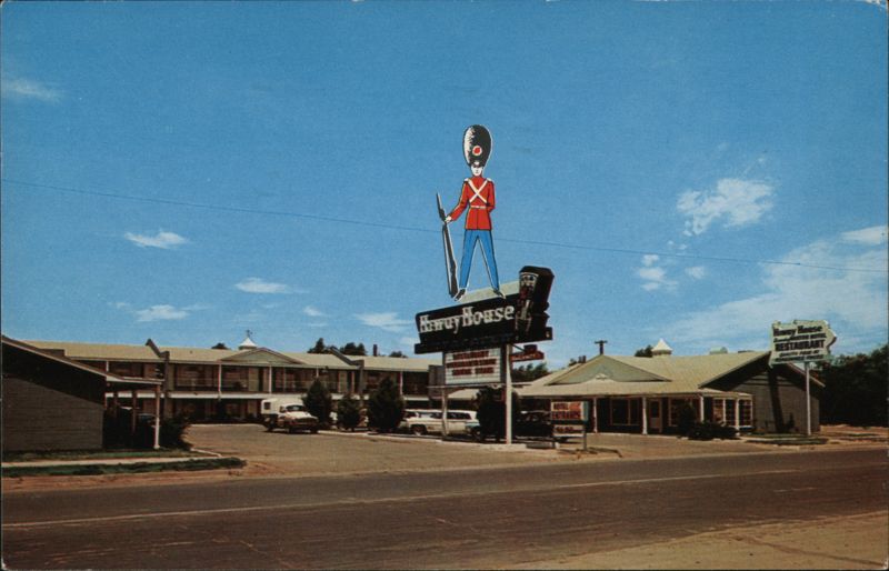 | A member of the Sentry Motel System, this location offers charm, comfort, and modern conveniences like a restaurant, coffee shop, and box lunches for travelers. The distinctive sign features a soldier figure. The motel's motto is 'We Guard Your Comfort'. |