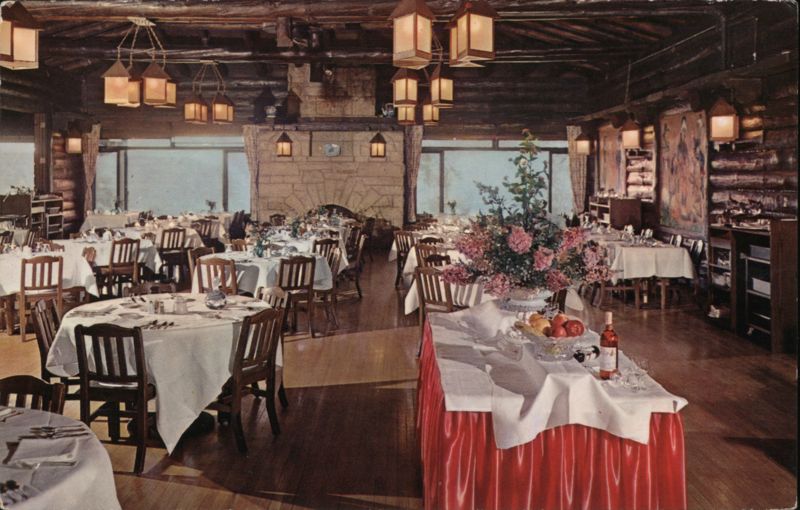 Rustic dining room in the El Tovar Hotel on the South Rim of Grand Canyon, seating 250, known for its excellent cuisine.