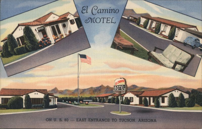 El Camino Motel located on U. S. 80, two miles Southeast of Business Center. Features include single and double rooms, kitchenettes, apartments, suites, outdoor steak grill, air cooling, electric refrigeration, and maid service. A cafe is nearby. |