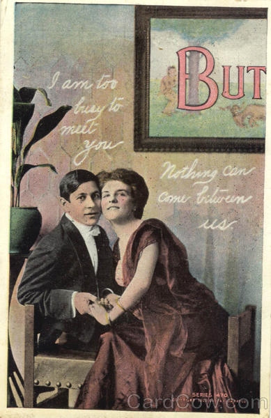 Front: I am too bresy to muit BUT Nothing can Come between us SERIES 470 COPYRIGHT 1909 BY TAYLOR ART CO. Back: UNION CITY Af 30 COMMUNICATION ONE CEN sure of W. R. Dichl Hazel Ingle Hay Winchester. P11.