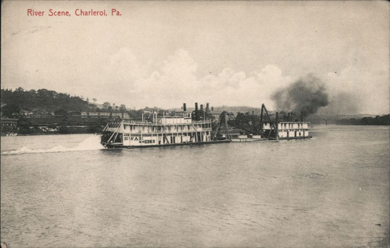 Steamboat Swan and Dredge Boat on River, Charleroi, PA