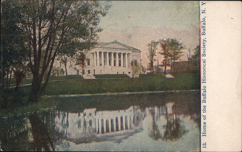 The Buffalo Historical Society building, located in Delaware Park, is constructed of white marble. It contains a free reference library and museum.