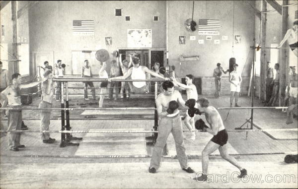 Conversion of an RB. 1 Building into a Squadron Gymnasium. Tune in "Free For All" all-soldier show every Thursday 7:30 p.m. c.w.t. W W L, New Orleans. |