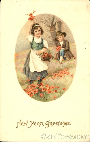 Front: NEW YEAR GREETINGS. Back: "Artistic" Post Card Series No.1360. For Correspondence. Bion is pest Coming down with the to & Canada Зазира Рара хонатсь al We are a White, Dela Papa