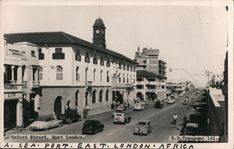 View of a bustling Oxford Street featuring the Southern Life Building with its distinctive clock tower, cars, and pedestrians.