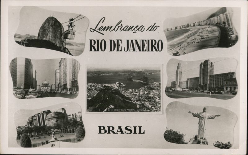 Multiple iconic views of Rio de Janeiro, including Sugarloaf Mountain, Christ the Redeemer statue, and various cityscapes and beaches.