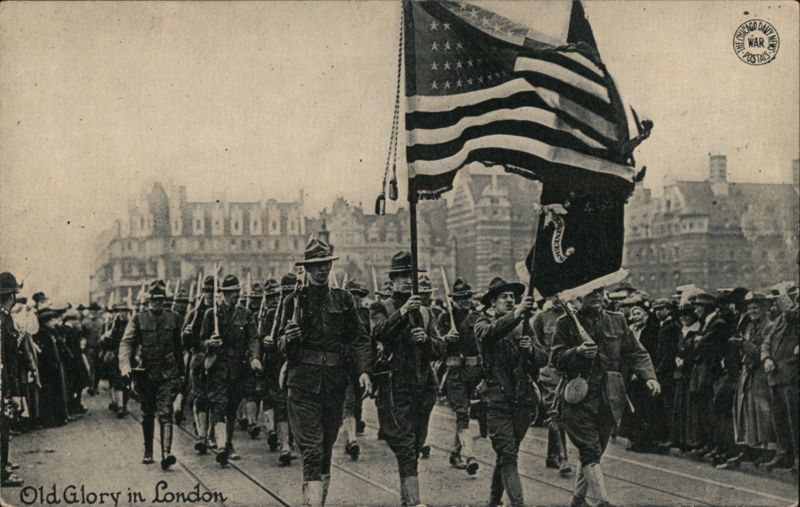 US Soldiers Marching with American Flag, Old Glory, London WWI