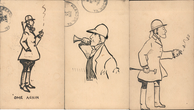 Set of 3: British Style Fox Hunt Man Hand Drawn