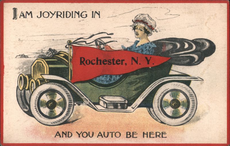 Woman Joyriding in Early Automobile, Rochester, NY - You Auto Be Here