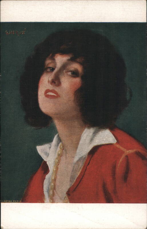 G. Hervé - Méditation, Woman in Red with Pearl Necklace