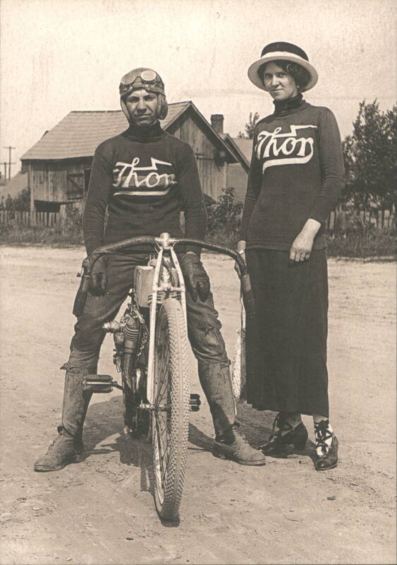 Man & Woman with Thor Motorcycle, Racing Gear Man & Children with Wagner Motorcycle, House Background Early Motorcycle Sidecar Event with Spectators Two Men on a Tardis Motorcycle, Smoking Pipes Man on Motorcycle with Woman in Sidecar Men on Motorcycles in Front of Savings Bank & Confectionery Royal Signals Dispatch Riders Motorcycle Stunt Display Men on Motorcycles on a Dirt Road - The Long Road Woman on Ariel Motorcycle MS 9299 Men on Bicycles, 40 Miles Per Hour Men with Bicycles on Dirt Street, Fowler Woman on Motorcycle, Smiling, Wearing Headscarf Man and Child on Harley-Davidson Motorcycle with Sidecar Woman on Early Motorcycle in front of House Early 20th Century Men with Horses and Motorcycle |