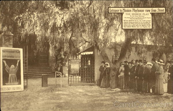 The Mission Play the world's greatest pageant drama produced on its own stage, the largest in the West and in the most nique playhuse in the world. Undr the shadow of Old San Gabriel Mission near Los Angeles, Cal.