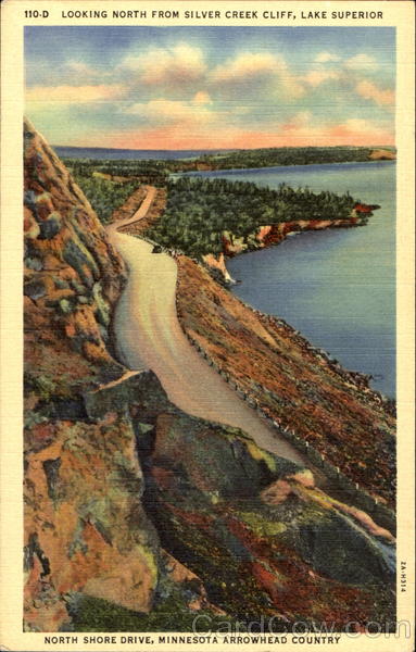 Front: 110-D LOOKING NORTH FROM SILVER CREEK CLIFF, LAKE SUPERIOR NORTH SHORE DRIVE, MINNESOTA ARROWHEAD COUNTRY 2A-H314 Back: ZENITH INTERSTATE NEWS CO., DULUTH, MINN.