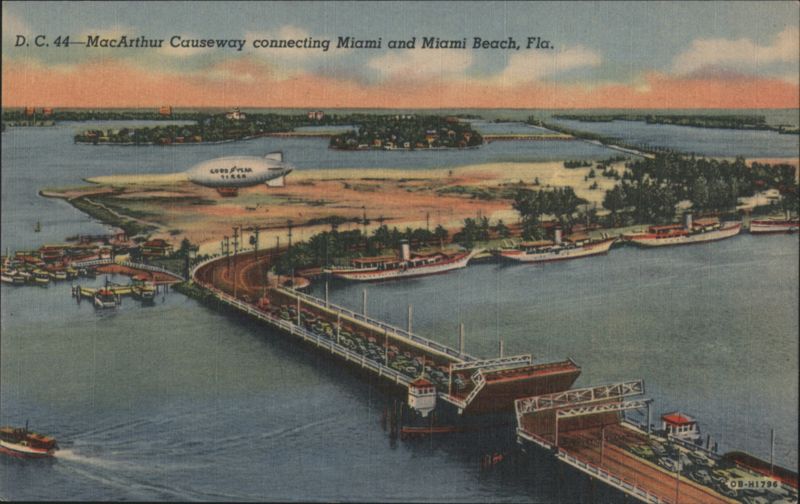 MacArthur Causeway, Miami & Miami Beach, with Blimp