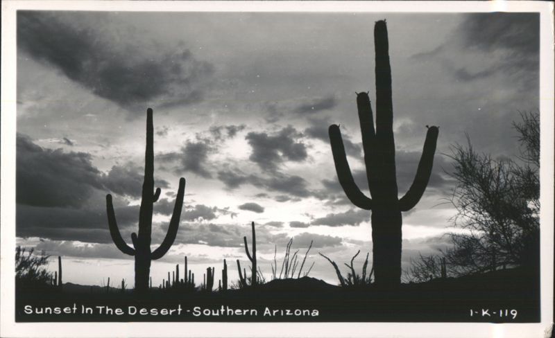 Saguaro Cacti Silhouettes at Sunset, Desert Landscape