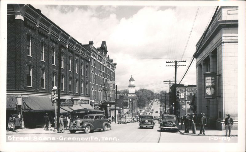 Greeneville Street Scene with Vintage Cars & Greene County Bank