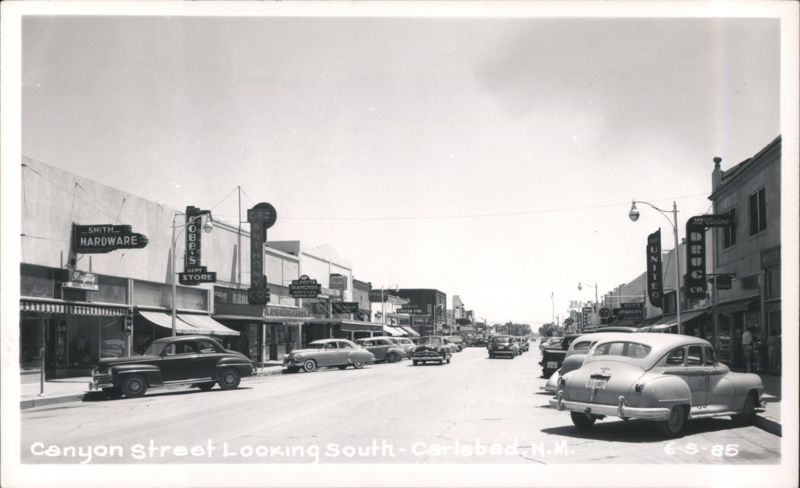Canyon Street Looking South, Carlsbad NM - Smith Hardware, McAdoo Drug Co.