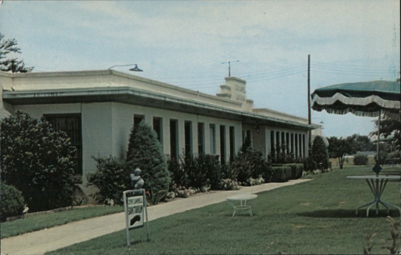 View of the Oklahoma Psychiatric Foundation building, established in 1939, featuring a landscaped lawn and outdoor seating area.