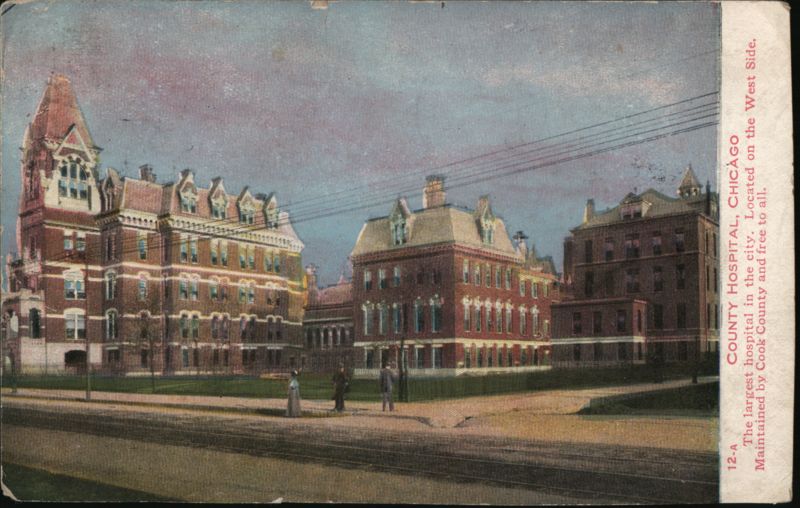 The largest hospital in the city. Located on the West Side. Maintained by Cook County and free to all.