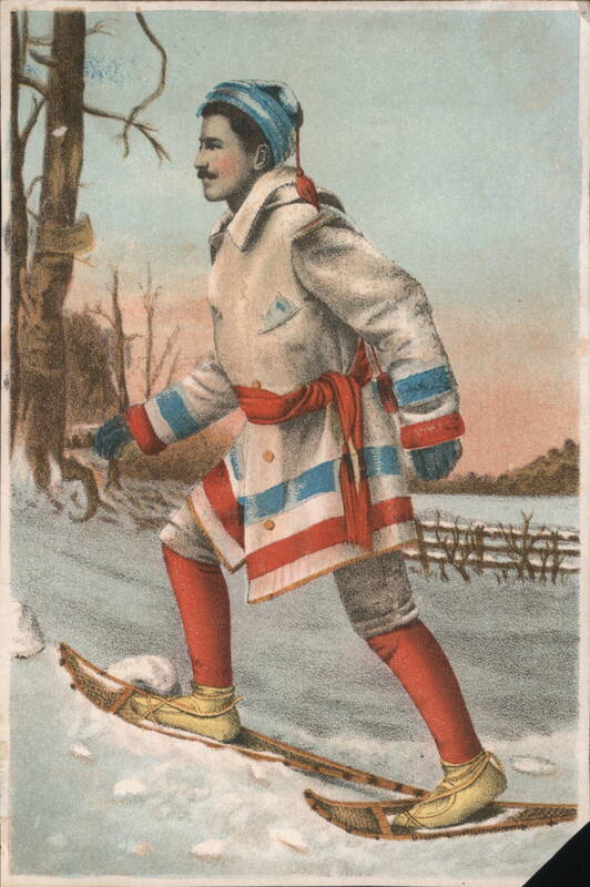 Man on Snowshoes in Winter Landscape, C.C. Parkhurst Ad