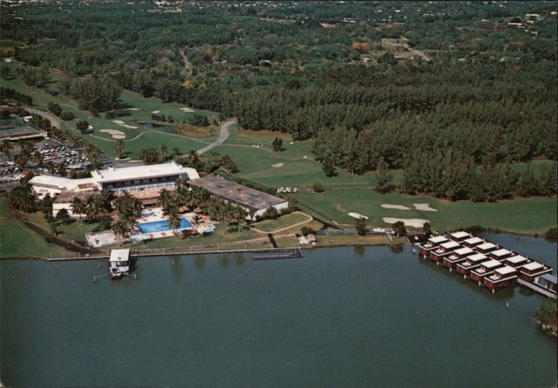 Aerial view of the prestigious year-round resort, featuring unequalled golfing and tennis, delicious food, and magnificent convention headquarters.