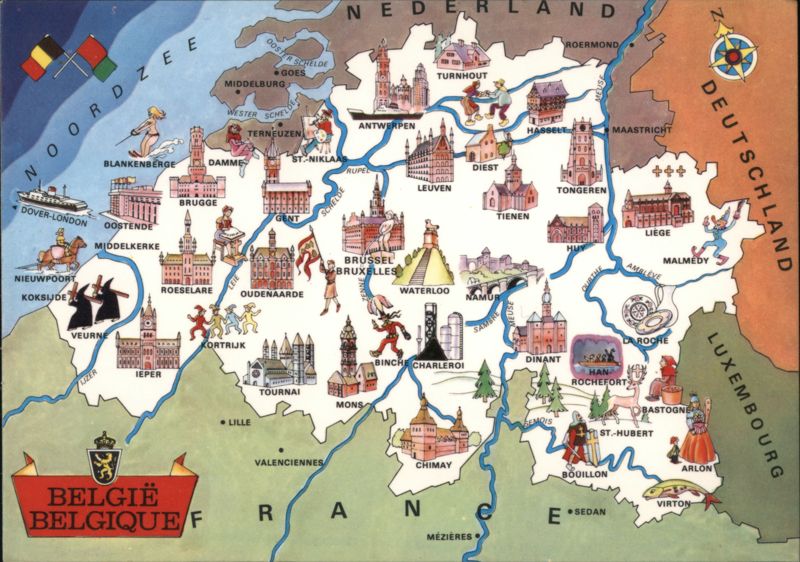 Belgium Pictorial Map, Landmarks & Cities