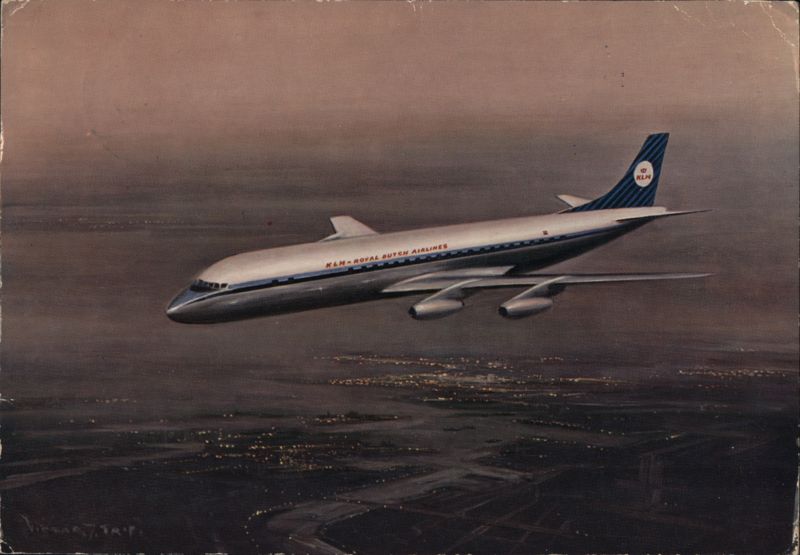 KLM Royal Dutch Airlines Douglas DC-8 Jetliner Night Flight