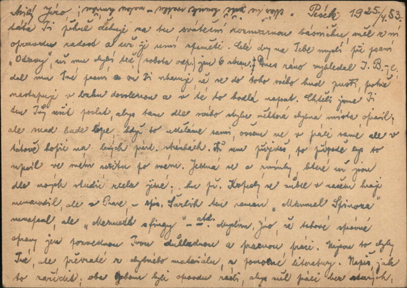 A personal handwritten letter addressed to Jiří Čirek in Prague, Czechoslovakia, mailed in 1935, featuring a Czechoslovakian stamp and postmark.