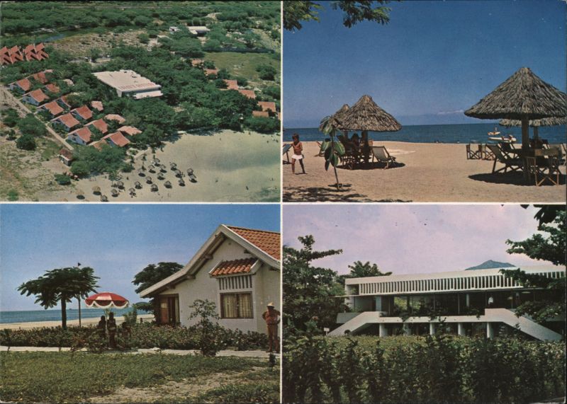 Four views of the Irotama Hotel, located 2.5 miles from the airport and 8.7 miles from the city. Scenes include an aerial view of the complex, a beach with thatched umbrellas, and two different hotel buildings.