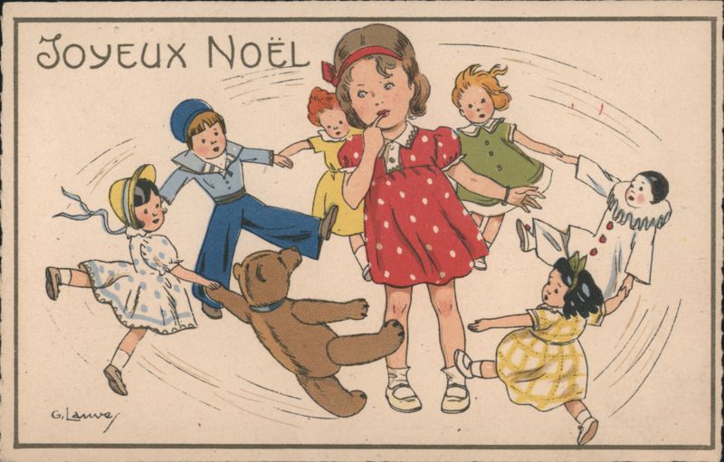 Joyeux Noël Children Playing with Teddy Bear, G. Lanne Art